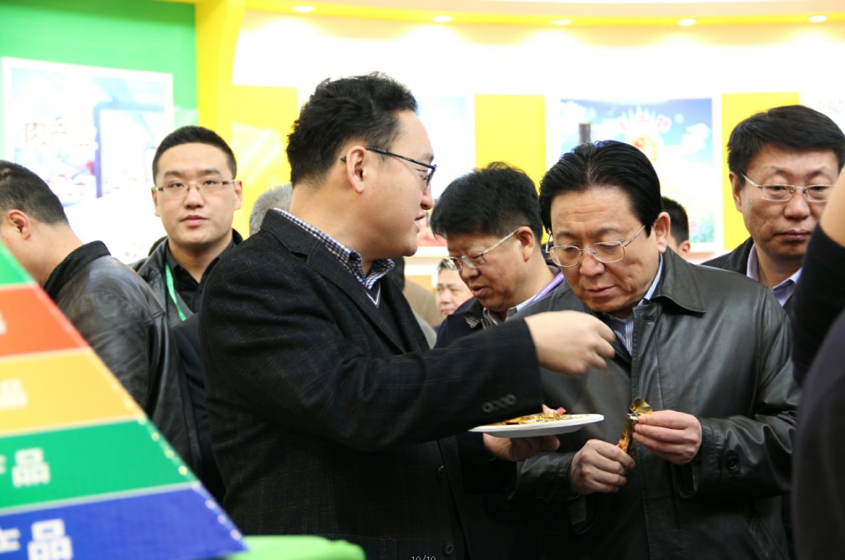 蒙羊牧業(yè)執(zhí)行總裁閆樹(shù)春為王玉明副主席和郭健廳長(zhǎng)介紹參展產(chǎn)品