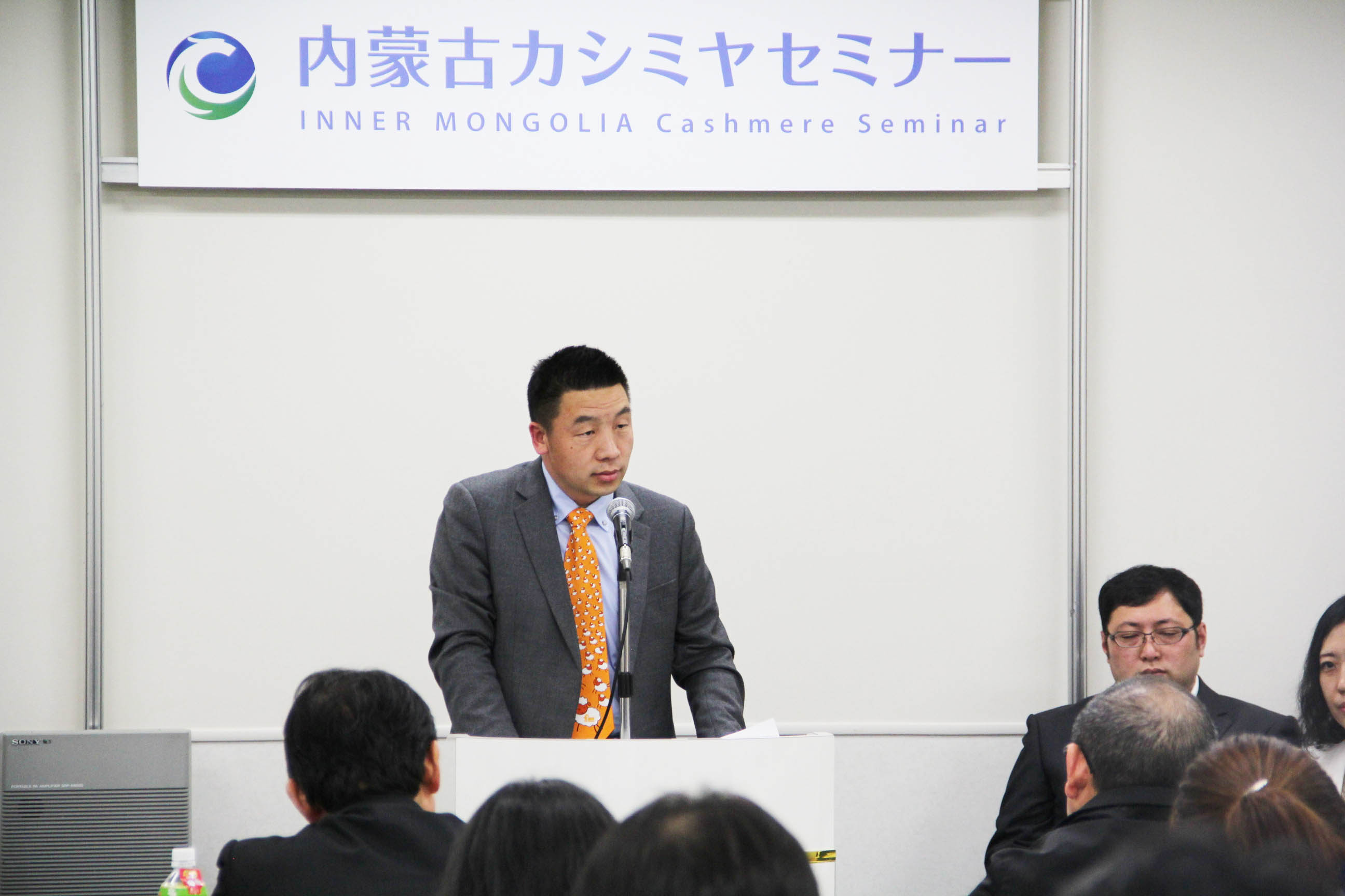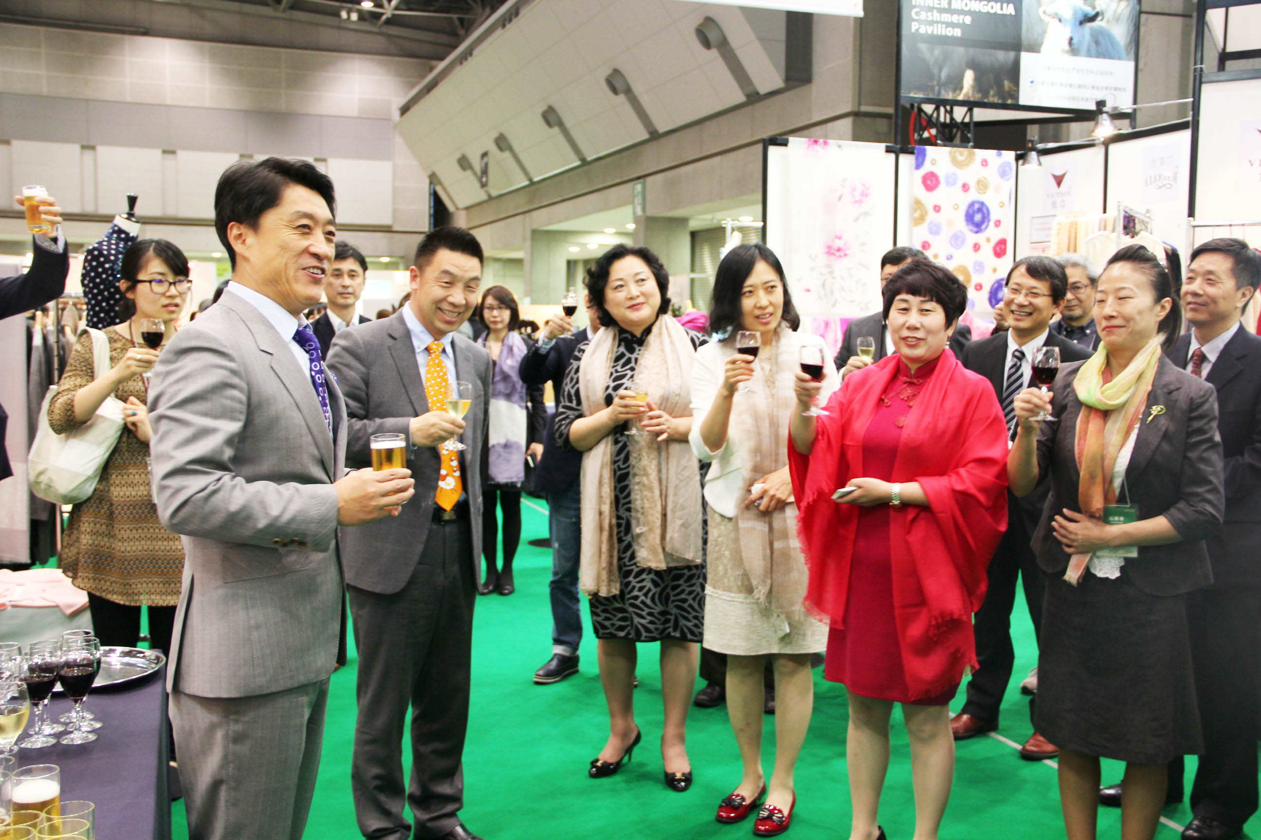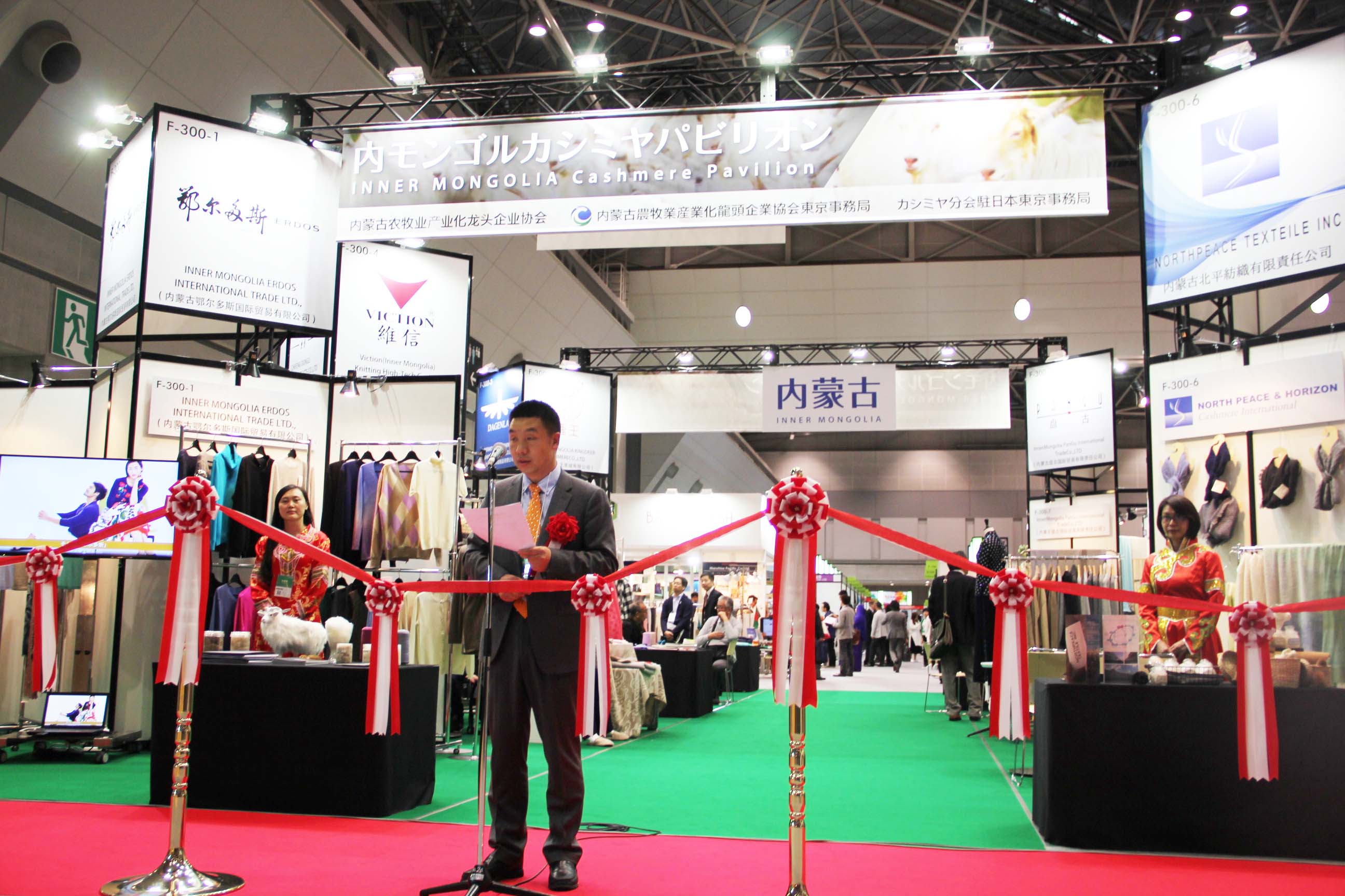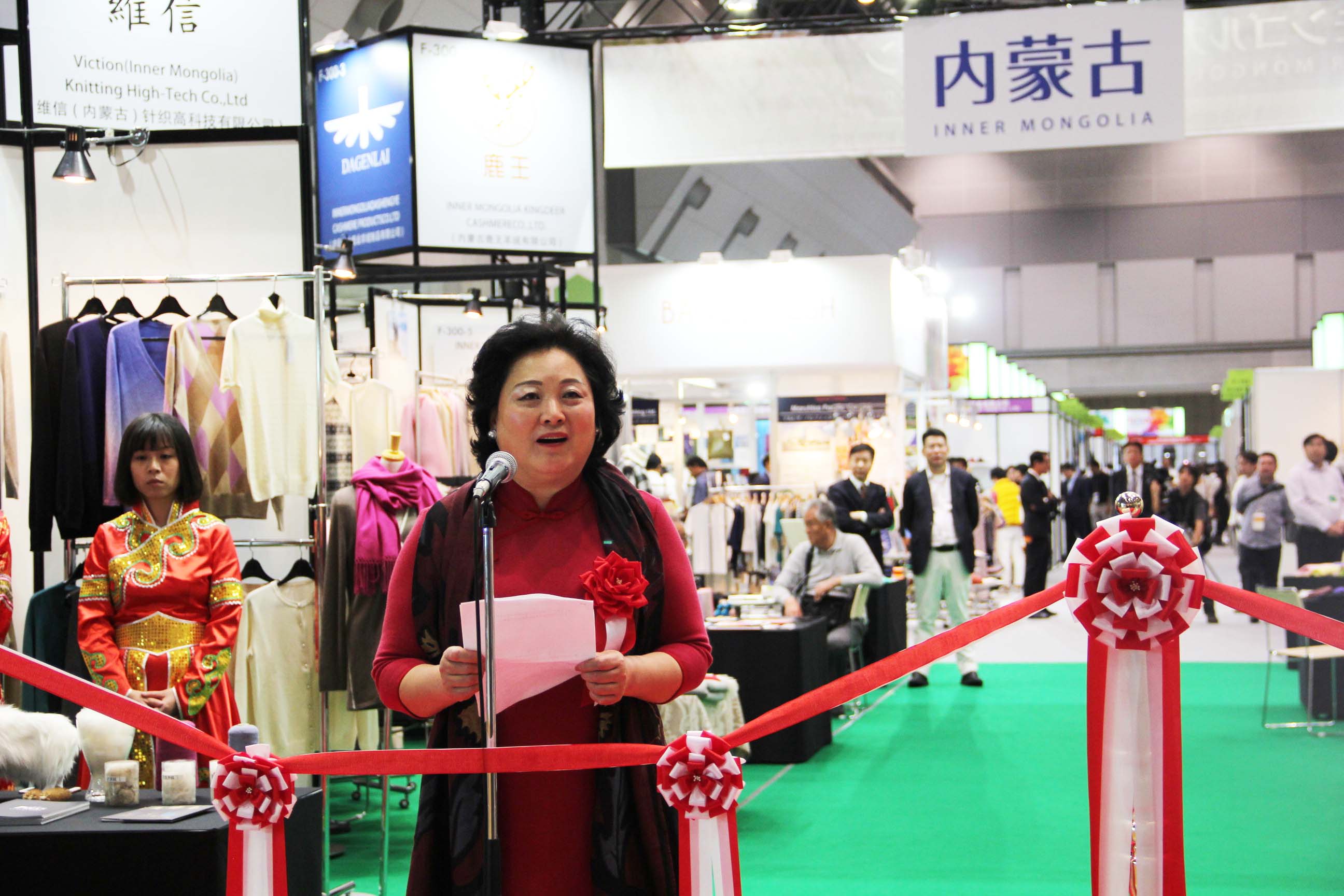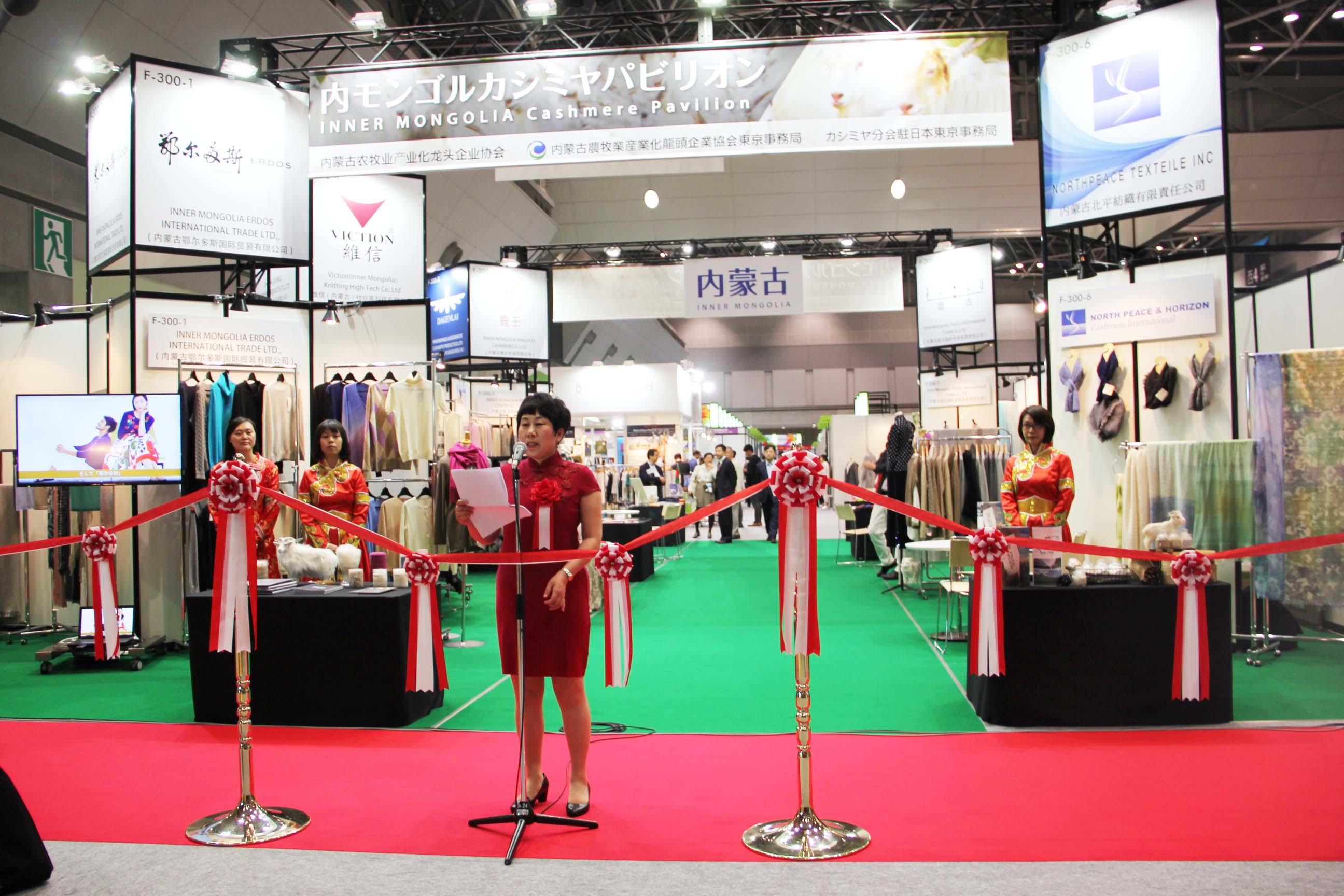2016426日上午11時,在內(nèi)蒙古羊絨展區(qū)前,舉行了盛大的開業(yè)剪彩儀式,內(nèi)蒙古自治農(nóng)牧業(yè)廳產(chǎn)業(yè)化處副處長郟金梅、內(nèi)蒙古農(nóng)牧產(chǎn)業(yè)化龍頭企業(yè)協(xié)會會長閆樹春、內(nèi)蒙古農(nóng)牧產(chǎn)業(yè)化龍頭企業(yè)協(xié)會羊絨產(chǎn)業(yè)分會會長王風(fēng)之出席剪彩儀式,并分別就政府支持、協(xié)會服務(wù)和企業(yè)自律發(fā)展等幾方面做了精彩致辭。郟金梅副處長表示,希望通過此次活動,使得社會各界代表能夠贏得機遇、拓展空間,取得豐碩的成果,同時真誠盼望各方來賓、新老朋友能夠進一步了解內(nèi)蒙古羊絨,認識內(nèi)蒙古羊絨,并以此為契機,加強內(nèi)蒙古羊絨界與日本企業(yè)的合作,攜手發(fā)展,實現(xiàn)共贏,共創(chuàng)輝煌。閆樹春會長在致辭中講到,我們此行不僅是要展示內(nèi)蒙古羊絨原料優(yōu)勢地位和行業(yè)加工的專業(yè)性,更希望能充分利用各個平臺廣泛交流,探討合作途徑的契合點,推動兩國羊絨行業(yè)多方共贏,共同提升全球市場對羊絨產(chǎn)品的認知度,希望我們的羊絨企業(yè)能團結(jié)一致,實現(xiàn)羊絨產(chǎn)業(yè)的可持續(xù)發(fā)展。羊絨產(chǎn)業(yè)分會會長王風(fēng)之在致辭中表示,通過內(nèi)蒙古農(nóng)牧業(yè)產(chǎn)業(yè)化龍頭企業(yè)協(xié)會羊絨分會的平臺,我們勢必會在培育超細超長型產(chǎn)絨山羊、提升優(yōu)質(zhì)種群的規(guī)模、建立行業(yè)質(zhì)量標準和抱團發(fā)展,積極進行海外市場渠道、品牌、投資等多方面取得突破性進展,致力于將中國內(nèi)蒙古羊絨打造成為全球性的產(chǎn)業(yè)品牌。