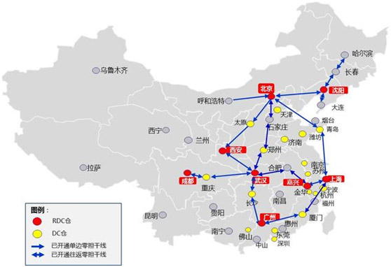 內(nèi)蒙古是我國最大的牛羊肉產(chǎn)地,其主產(chǎn)區(qū)集中在內(nèi)蒙古東部。內(nèi)蒙古地區(qū)東西跨度非常長,直線距離高達2305KM,跨盟市運輸距離往往也超過500KM,如果跨盟市進行中轉(zhuǎn)集散,將會產(chǎn)生高昂的干線運輸費用,而長距離的運輸也會導致整體運輸時效的降低。同時,牛羊肉對冷鏈運輸具有極強的依賴性,必須進行冷凍、冷藏。根據(jù)這個特點,順豐推出了針對內(nèi)蒙古牛羊肉冷鏈運輸?shù)慕鉀Q方案,順豐冷鏈運輸網(wǎng)絡圍繞牛羊肉主生產(chǎn)區(qū),再進入全國冷鏈運輸網(wǎng)。針對內(nèi)蒙古牛羊肉主生產(chǎn)區(qū)位于東部,順豐在干線網(wǎng)絡圍繞內(nèi)蒙古東部開展,干線開設就近轉(zhuǎn)接目前已開通的冷鏈運輸網(wǎng)絡節(jié)點,可避免直發(fā)成本高的問題并提升現(xiàn)有干線裝卸率。