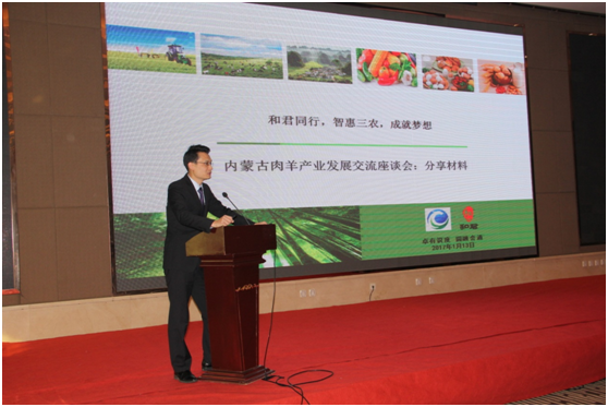 下午的座談會(huì)上,和君集團(tuán)副總經(jīng)理、和恭咨詢有限公司董事長王益民以《和君同行,智慧三農(nóng),成就夢(mèng)想》為演講主題,介紹了肉羊供應(yīng)鏈基金的意義及可行性,從中國及內(nèi)蒙古農(nóng)牧業(yè)產(chǎn)業(yè)的巨大機(jī)遇和挑戰(zhàn)著手,指出內(nèi)蒙古地大物博,擁有及其豐富的綠色生態(tài)資源,潛力巨大,目前產(chǎn)業(yè)發(fā)展的宏觀環(huán)境是政策環(huán)境,農(nóng)牧業(yè)現(xiàn)代化發(fā)展是未來的必然趨勢(shì)。產(chǎn)業(yè)的崛起有賴于政府支持,有賴于產(chǎn)業(yè)協(xié)會(huì),有賴于所有肉羊產(chǎn)業(yè)及像和君集團(tuán)這樣的智庫,希望大家能聯(lián)合起來,充分發(fā)揮優(yōu)勢(shì),配套產(chǎn)業(yè)發(fā)展規(guī)劃和政策,借助龍頭企業(yè)協(xié)會(huì)這一平臺(tái)和產(chǎn)業(yè)發(fā)展基金,聚集更多的資本、金融參與,利用智囊團(tuán)的智慧和人才,抱團(tuán)取暖,做實(shí)產(chǎn)業(yè)聯(lián)盟,共建聯(lián)合品牌,共享營銷平臺(tái),推動(dòng)產(chǎn)業(yè)升級(jí),成就中國羊肉第一品牌。