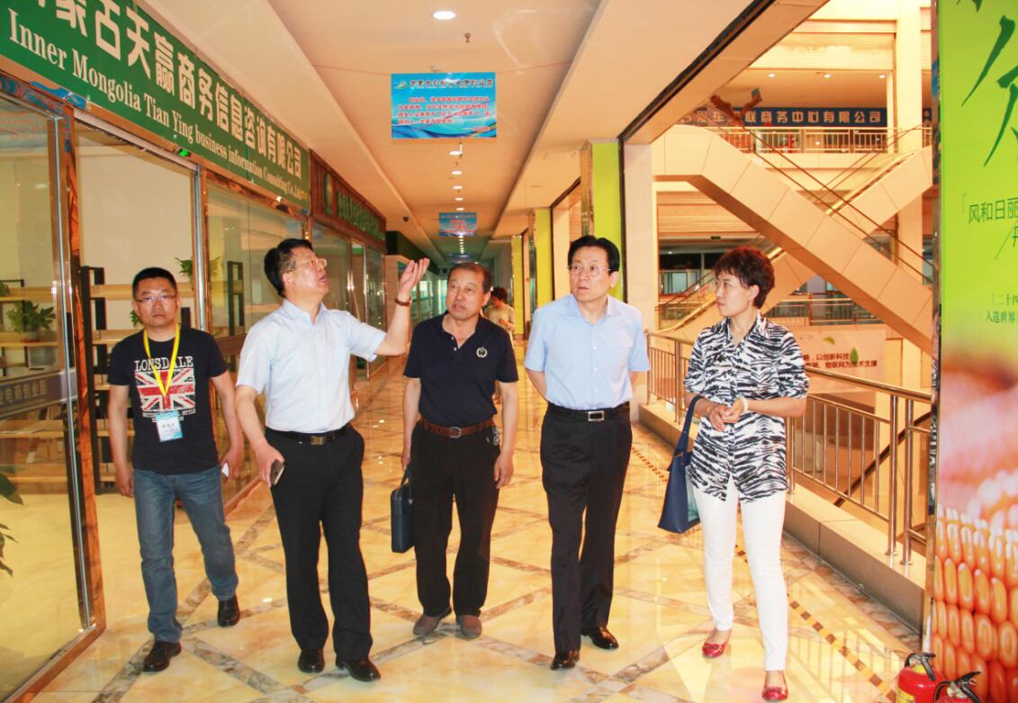 5月18日,內(nèi)蒙古自治區(qū)農(nóng)牧業(yè)廳副廳長云挨厚、產(chǎn)業(yè)化處處長侯雁冰,龍頭企業(yè)協(xié)會執(zhí)行會長兼秘書長林永亮、常務(wù)秘書長劉俊青一行參觀了位于呼和浩特市政府對面的內(nèi)蒙古農(nóng)牧業(yè)電商創(chuàng)業(yè)園,創(chuàng)業(yè)園副主任郝國文陪同參觀。
