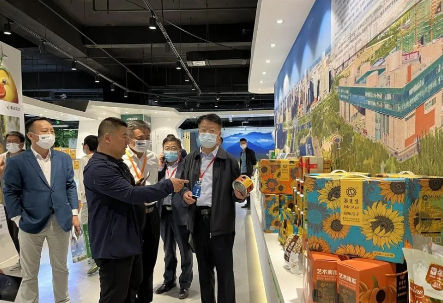 自治區(qū)農(nóng)牧廳市場(chǎng)與對(duì)外合作處處長(zhǎng)侯雁冰參觀展廳