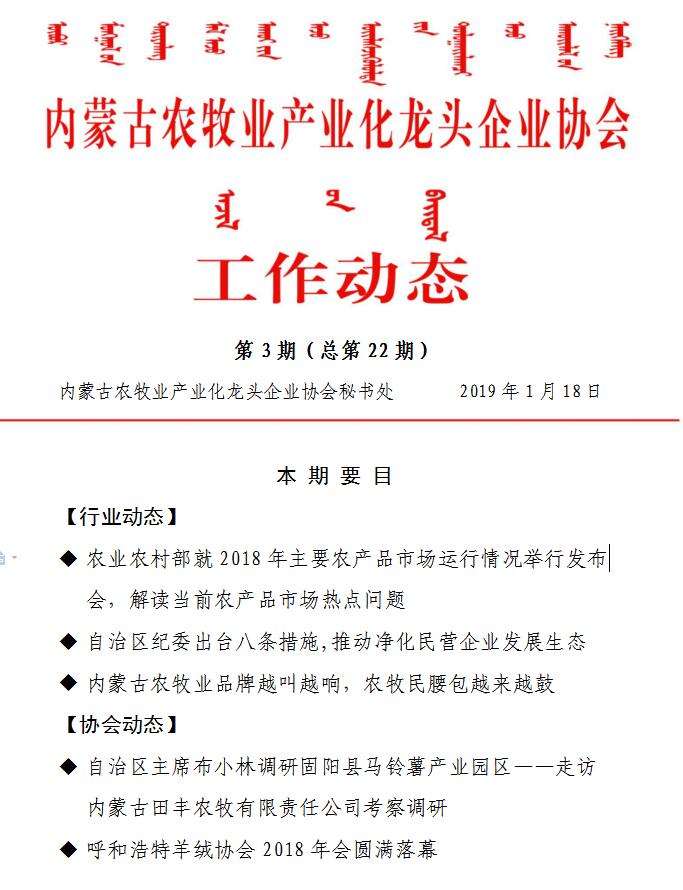內(nèi)蒙古農(nóng)牧業(yè)產(chǎn)業(yè)化龍頭企業(yè)協(xié)會工作動態(tài)第3期(總第22期)