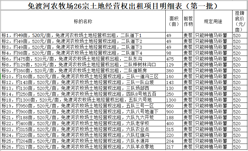 3.前茬作物:第一批麥茬;第二批馬鈴薯茬,詳情以明細(xì)表為準(zhǔn)