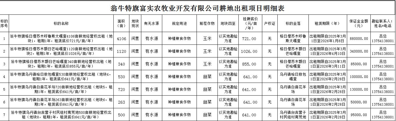 翁牛特旗富實(shí)農(nóng)牧業(yè)開(kāi)發(fā)有限公司約7579畝耕地經(jīng)營(yíng)權(quán)出租