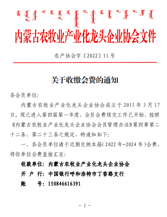 關于收繳會費的通知