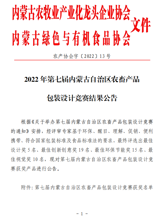 2022第十屆內蒙古“名優(yōu)特”農畜產品名單公告