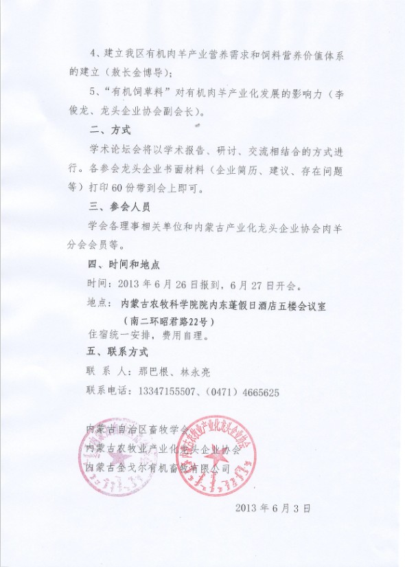 關于舉辦首屆內(nèi)蒙古有機肉羊產(chǎn)業(yè)經(jīng)濟發(fā)展學術論壇會的通知