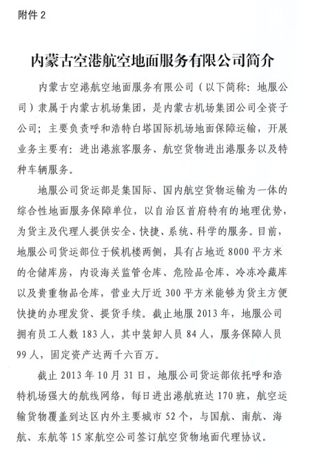 關(guān)于與內(nèi)蒙古空港航空地面服務(wù)有限公司開展物流合作的通知