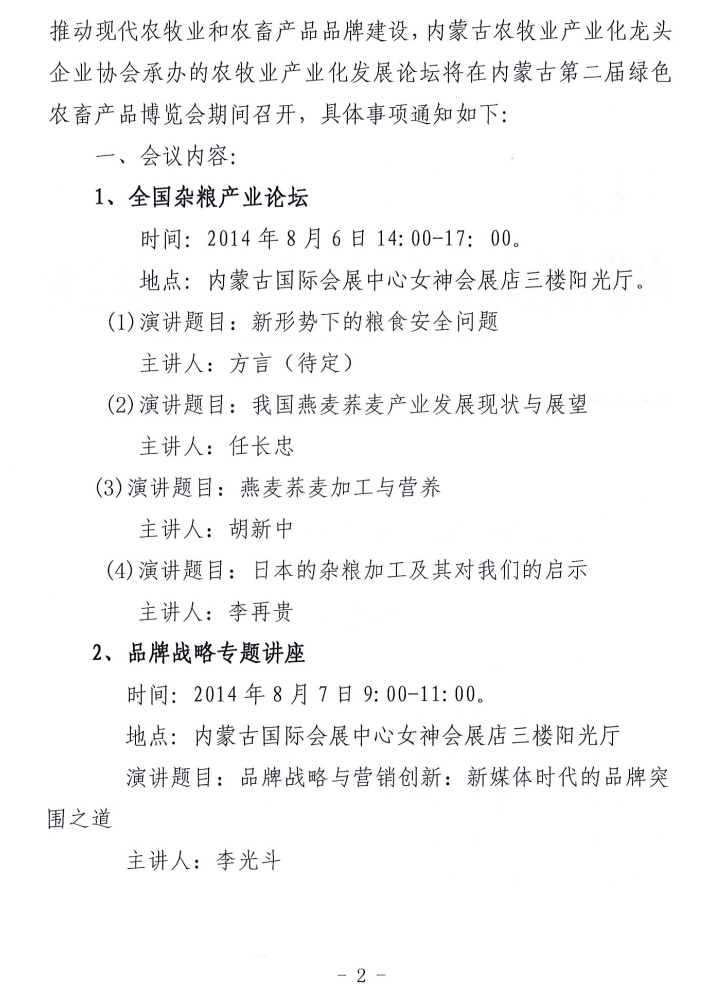關(guān)于舉辦內(nèi)蒙古農(nóng)牧業(yè)產(chǎn)業(yè)化發(fā)展論壇的通知