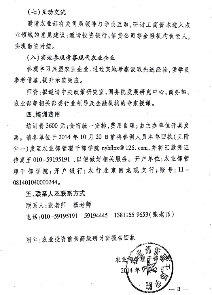 轉(zhuǎn)發(fā)“關(guān)于舉辦農(nóng)業(yè)投資前景高級研討班的通知”