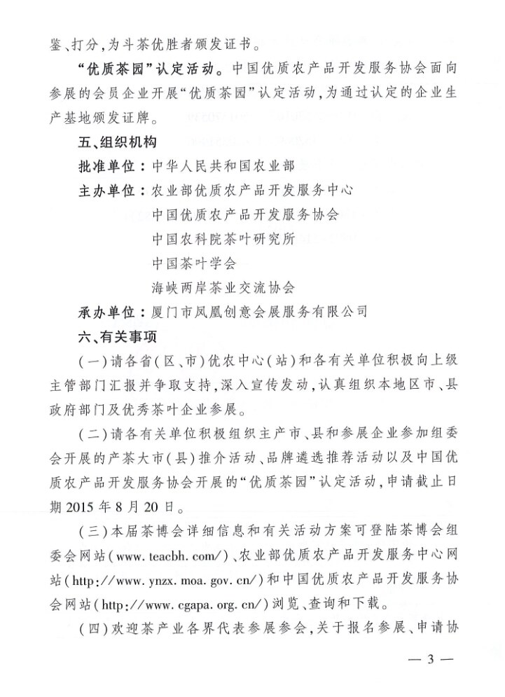 關(guān)于舉辦第三屆中國茶葉博覽會的通知