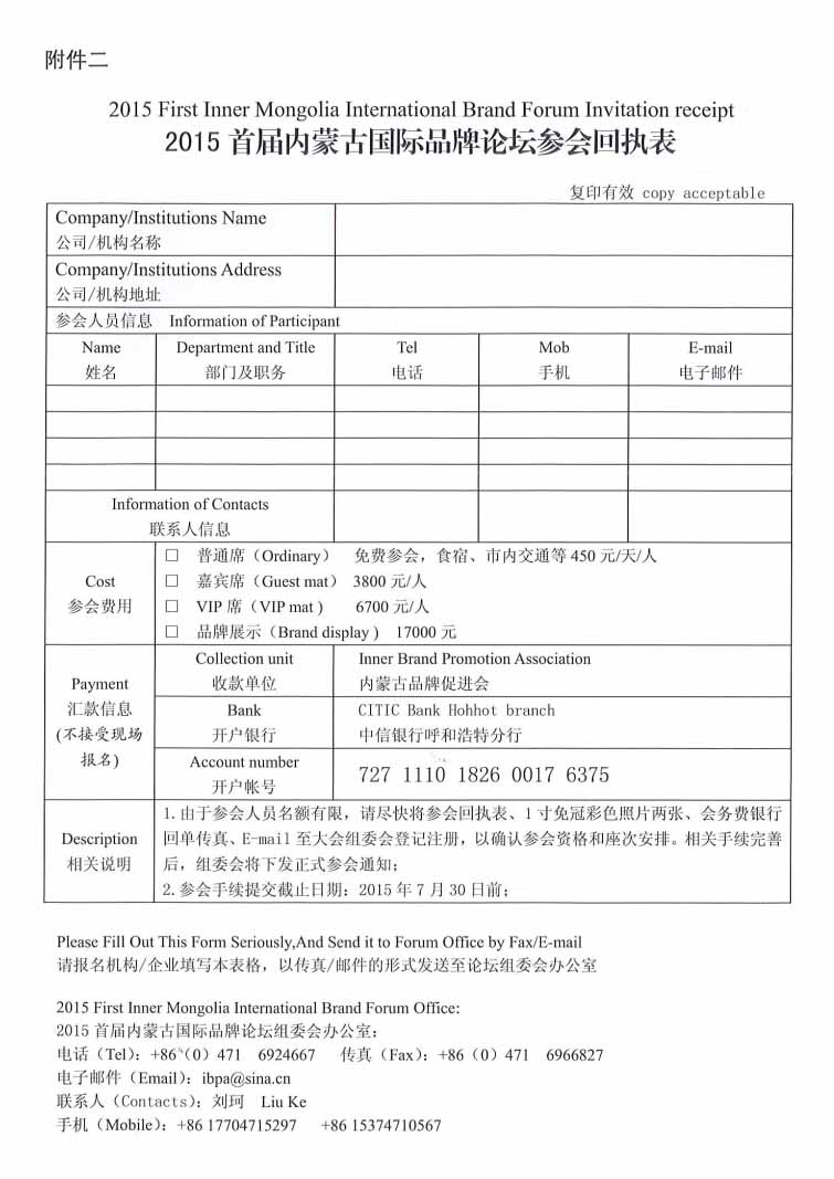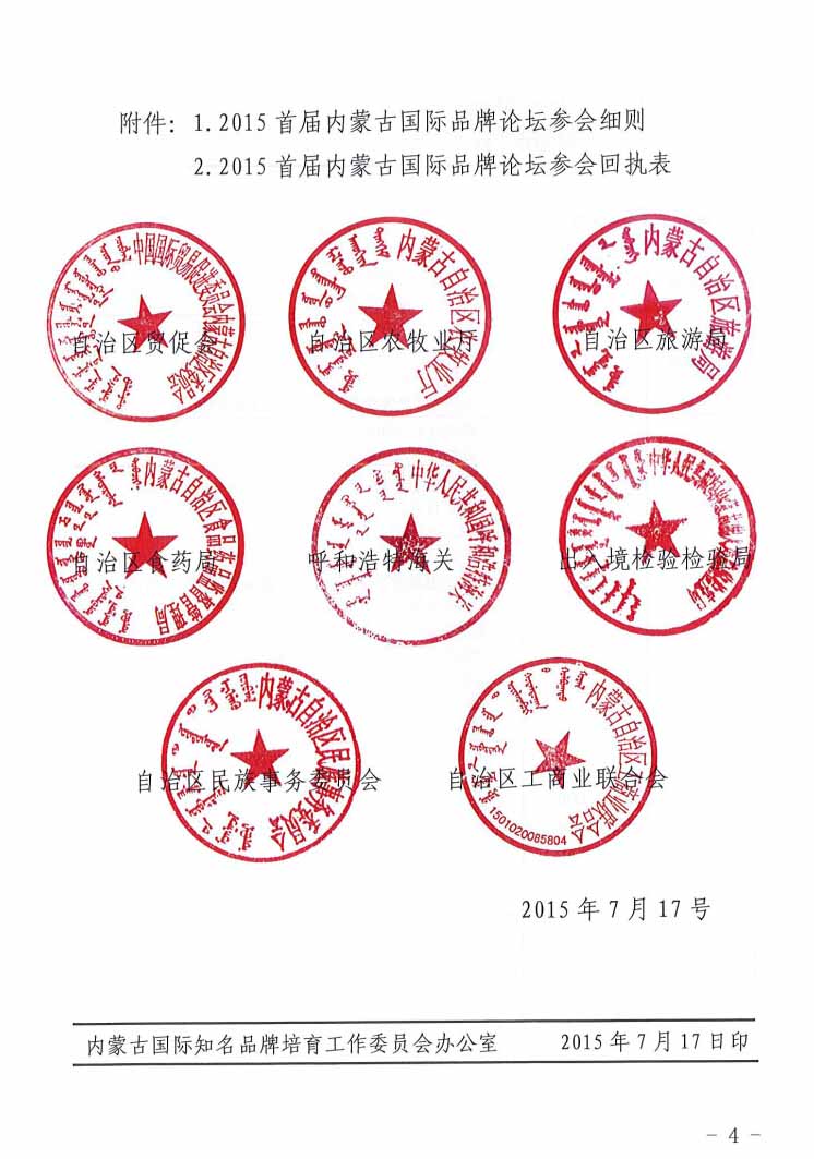 關(guān)于參加“2015首屆內(nèi)蒙古國(guó)際品牌論壇”的通知