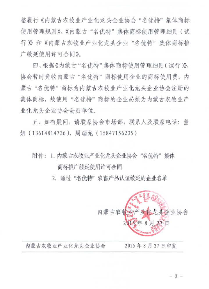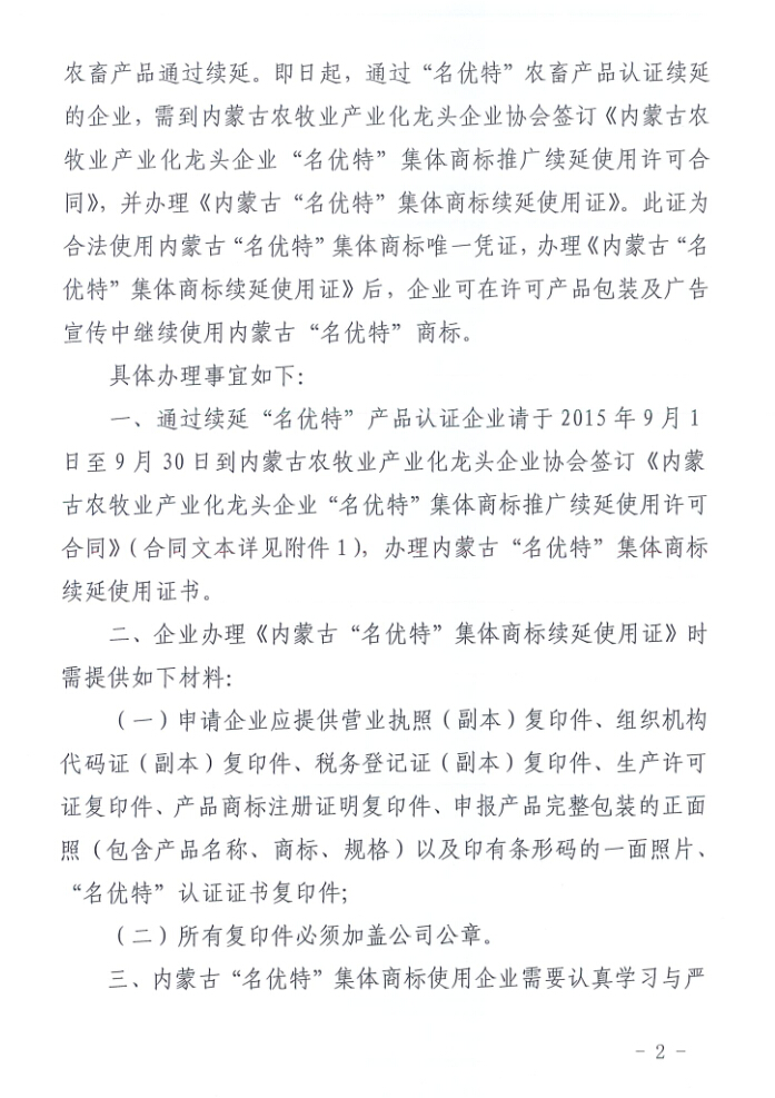 關于辦理《內(nèi)蒙古“名優(yōu)特”集體商標續(xù)延使用證》通知