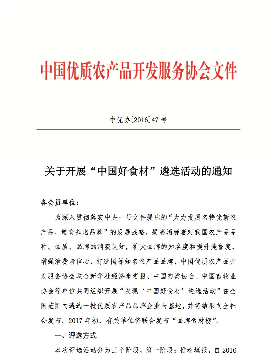 轉發(fā):關于開展“中國好食材”遴選活動的通知