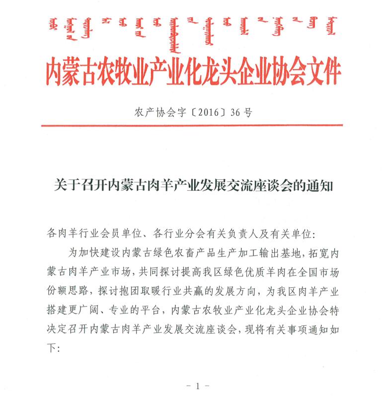 關(guān)于召開內(nèi)蒙古肉羊產(chǎn)業(yè)發(fā)展交流座談會(huì)的通知