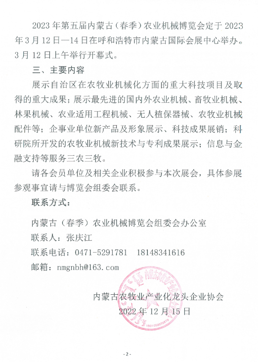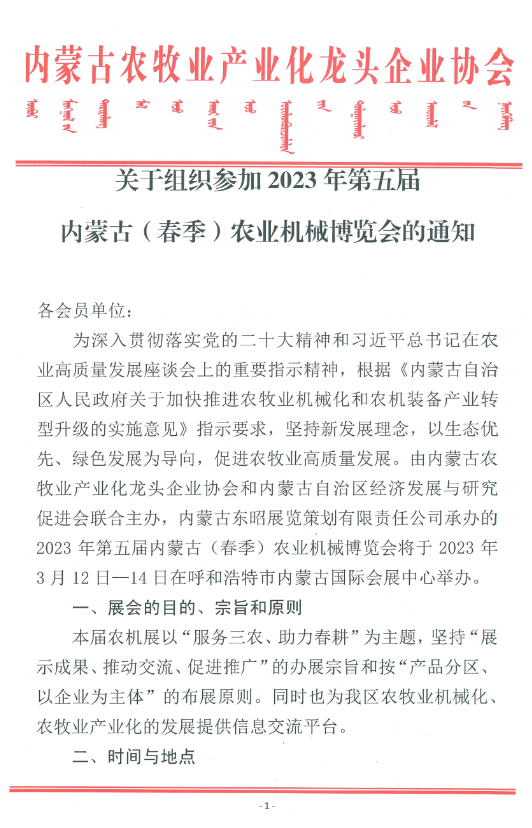 關于組織參加2023年第五屆內蒙古(春季)農業(yè)機械博覽會的通知