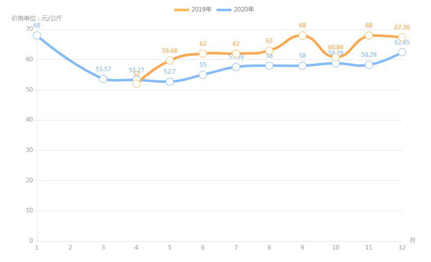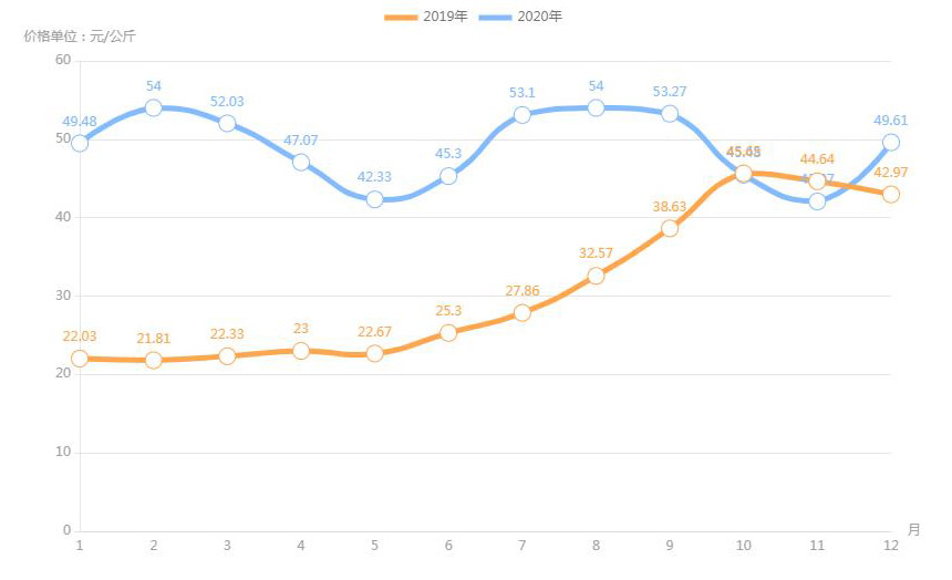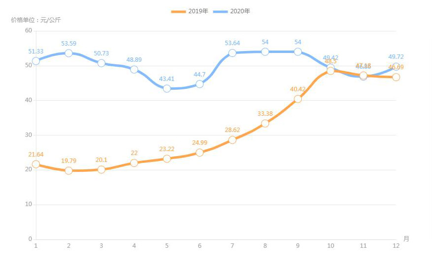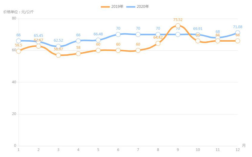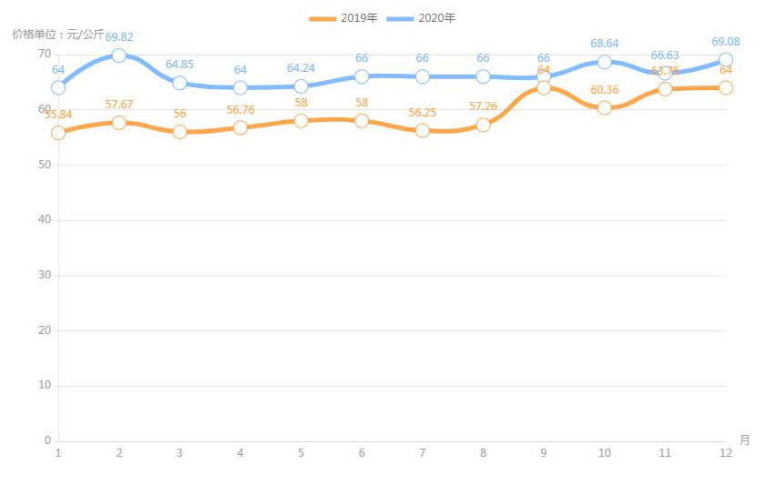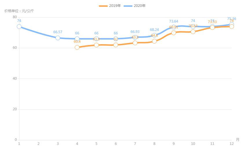 據(jù)農(nóng)業(yè)農(nóng)村部對全國500個(gè)集貿(mào)市場監(jiān)測,2020年12月第二周,全國羊肉價(jià)格為每公斤82.66元,連續(xù)八周上漲,同比上漲3.6%。業(yè)內(nèi)人透露,目前,養(yǎng)羊成本上升;人們對羊肉品質(zhì)的要求也越來越高,消費(fèi)者更加傾向于選擇有質(zhì)量認(rèn)證標(biāo)志和品牌的羊肉產(chǎn)品,特別是優(yōu)質(zhì)、味美的新鮮羊肉,加上羊肉產(chǎn)量不高,供應(yīng)不足,拉動了羊肉價(jià)格上漲。